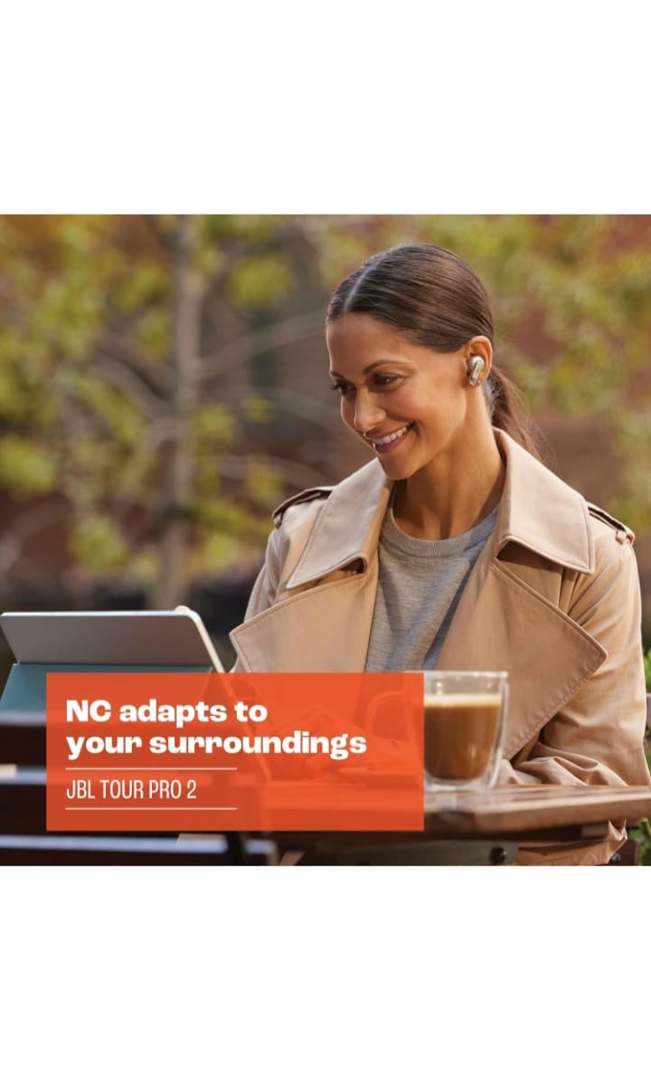 JBL Tour Pro 2's True Adaptive Noise Cancelling technology tunes out distractions so you can enjoy your favorite audio, or even the sound of silence, all powered by the legendary JBL Pro Sound and experience perfect, great sound on the go. The unique smart charging case allows you to control the headset settings without using your phone or the app. Immerse yourself in spatial audio for up to 40 hours on a single charge.